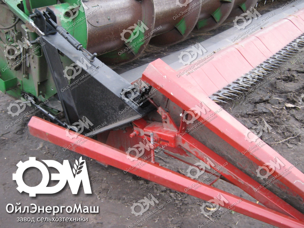 На жатку приставка монтируется при помощи кронштейнов, находящихся на концах рессор, и боковых замков-стяжек.