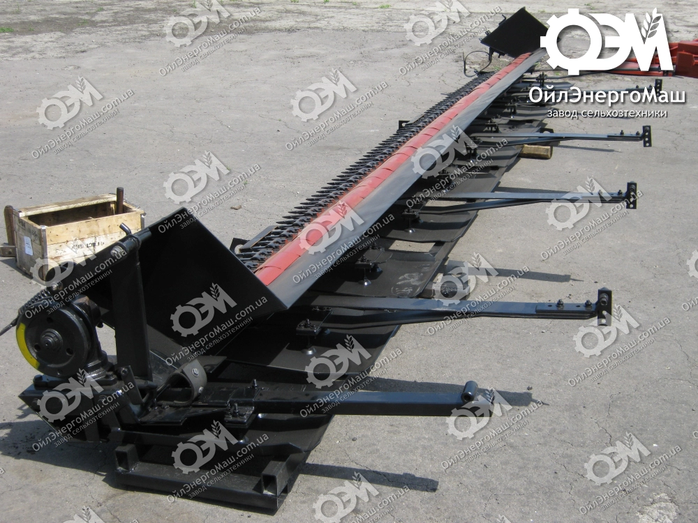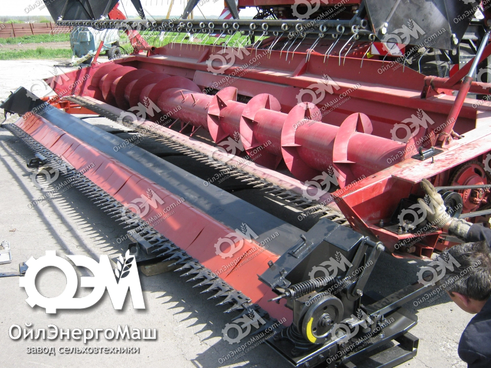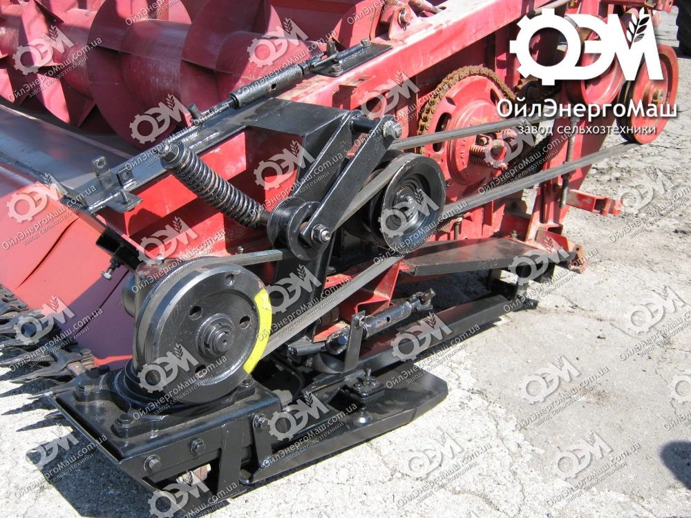 Приспособление приводится в движение клиновым ремнем от приводного шкива жатки через редуктор МПН. Эту задачу позволяет решить специальная подвеска, смонтированная на жатвенном аппарате.
